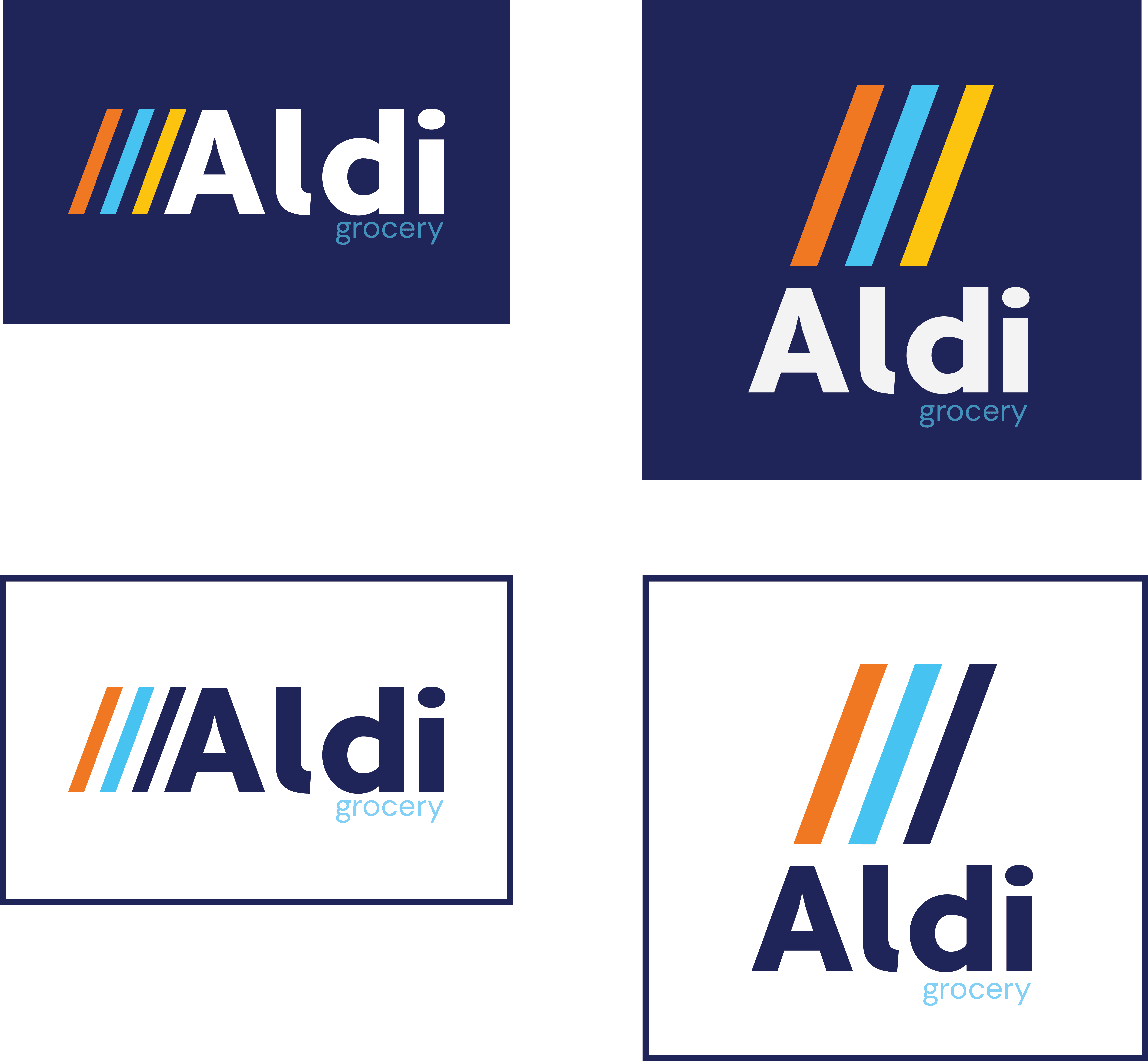 The new Aldi logo system is friendly, modern, and classic. It incorporates colors from the current branding system. It is also highly flexible, with versions for both dark and light backgrounds, as well as horizontal and vertical applications.