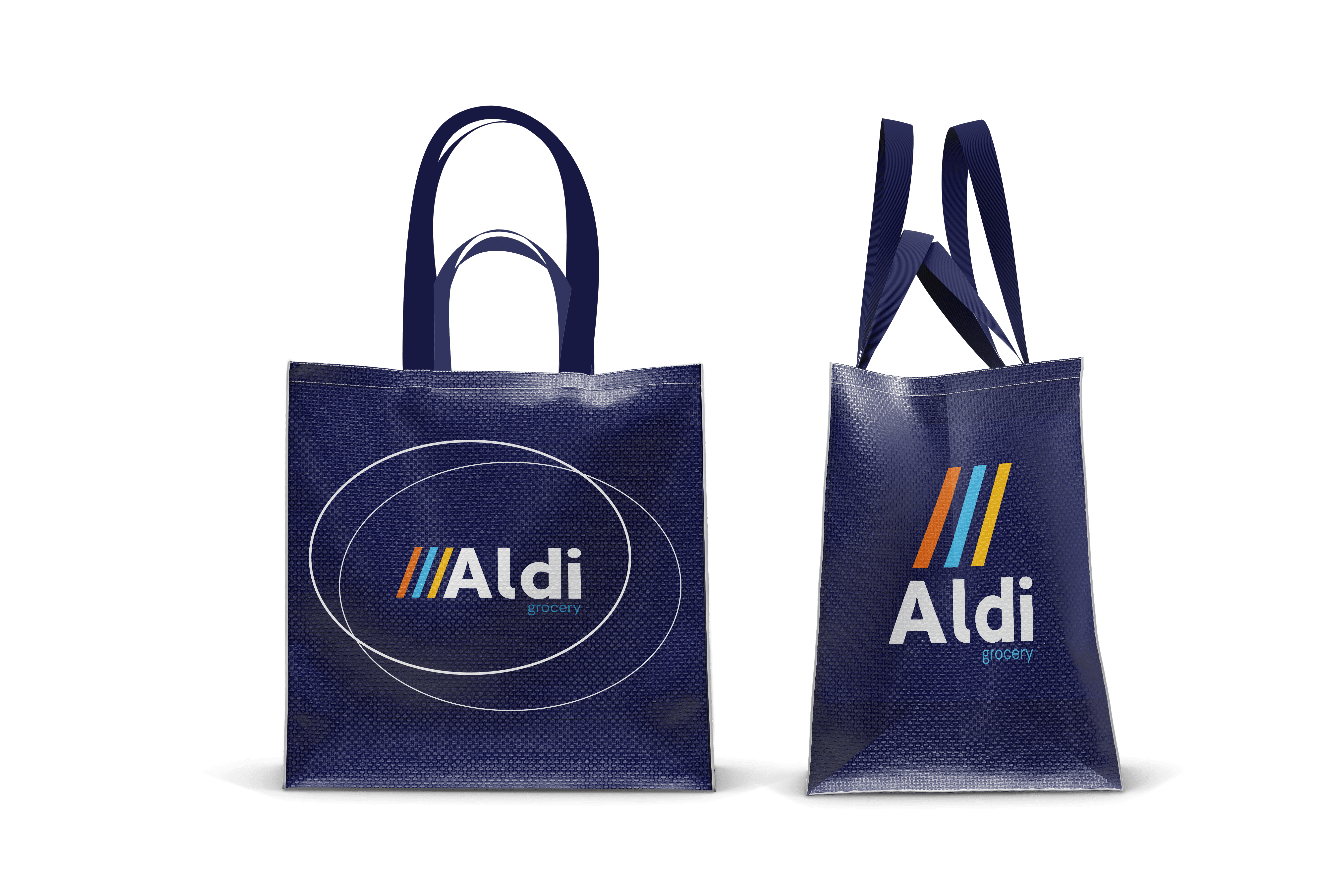 The slight curves of the typography give a welcoming feeling, and the three lines continue the iconic imagery of Aldi's current logo.