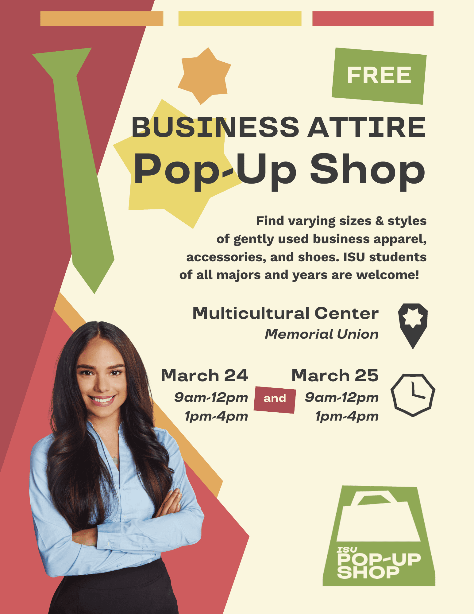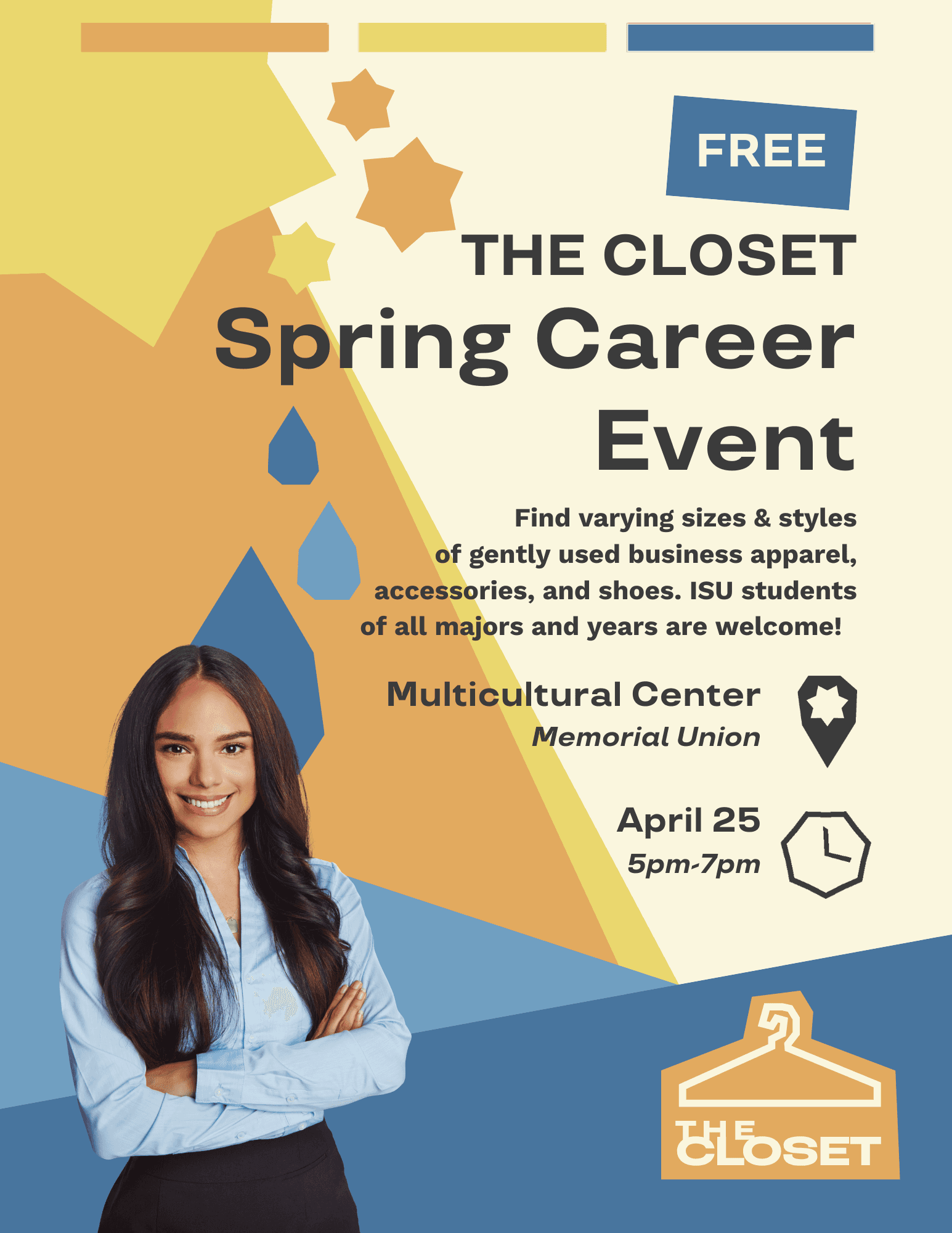 I lead the comprehensive rebranding of The Closet, a student organization at ISU that provides free apparel—primarily business attire for professional endeavors—through donations and volunteer work. As the Design Officer, I developed a fresh identity from the ground up, incorporating feedback from our executive team, with the launch planned for January 2025. The rebrand will add a fresh, bold, and fun visual identity to the organization.