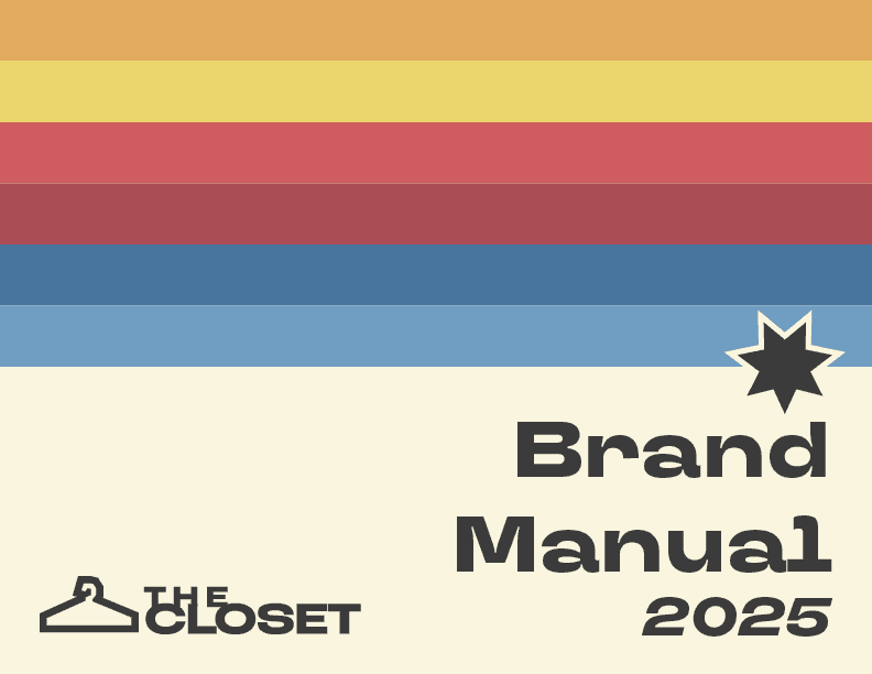 The final deliverables included a Brand Manual outlining typography, logo systems, color palette, patterns, graphic elements, and mockups. The branding draws inspiration from ThredUp's rebranding, which destigmatized secondhand clothing by emphasizing fun and fashion. I’ve added a vintage feel to resonate with our primary audience while designing adaptable logos (stacked and vertical) for diverse applications. The new branding transitions from The Closet's roots in its semesterly Pop-Up Shop to reflect its evolution into a permanent, impactful resource for students.